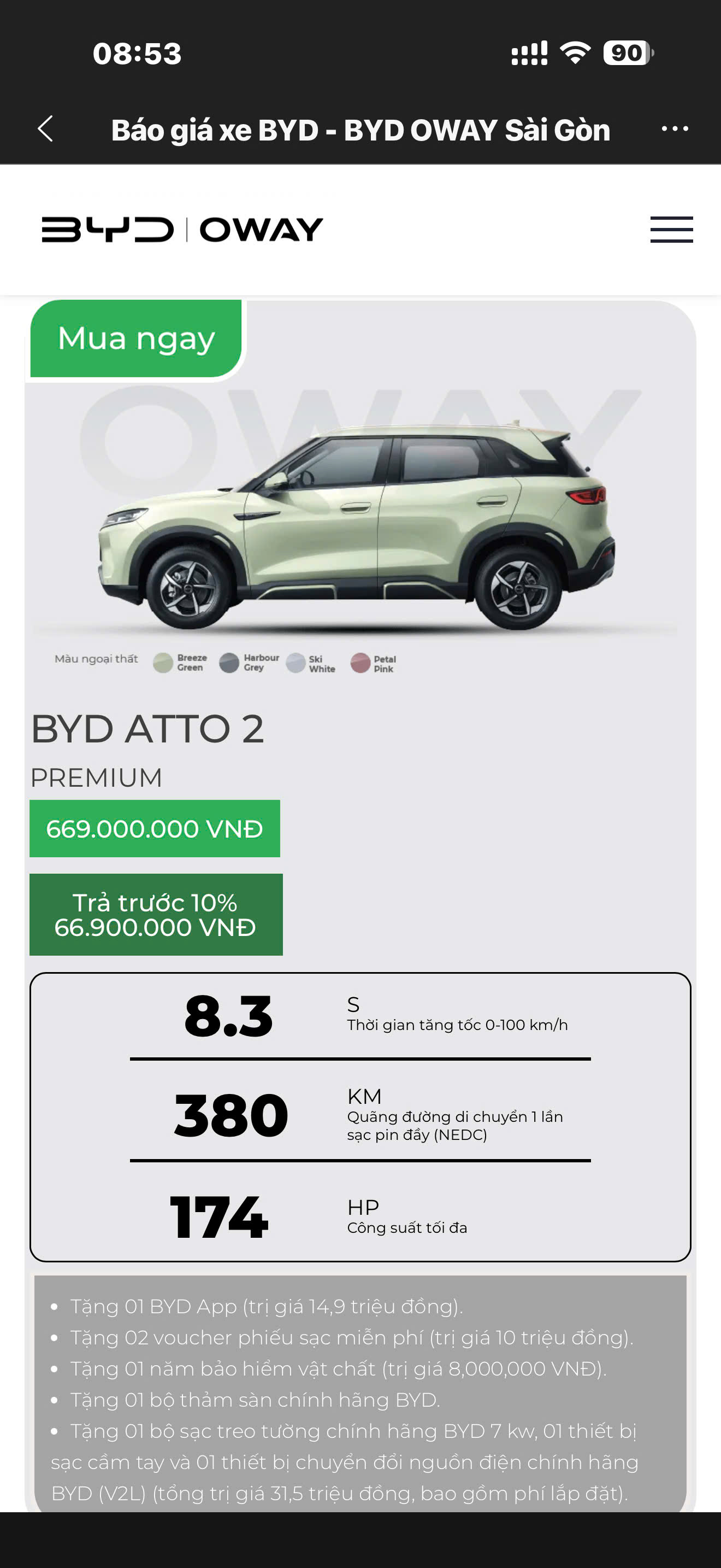 Giá trên là giá công bố của Hãng. Để được mua xe BYD Atto 2 giá tốt nhất + Khuyến Mãi nhiều nhất hãy gọi cho ngay cho Phòng Bán Hàng: 0933.173.769