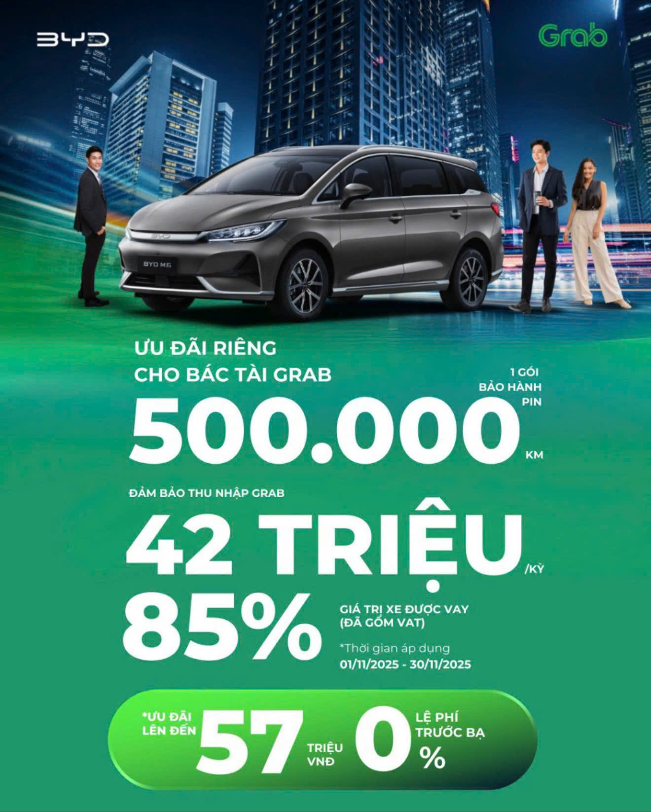 Giá trên là giá công bố của Hãng. Để được mua xe BYD M6 giá tốt nhất + Khuyến Mãi nhiều nhất hãy gọi cho ngay cho Phòng Bán Hàng: 0933.173.769