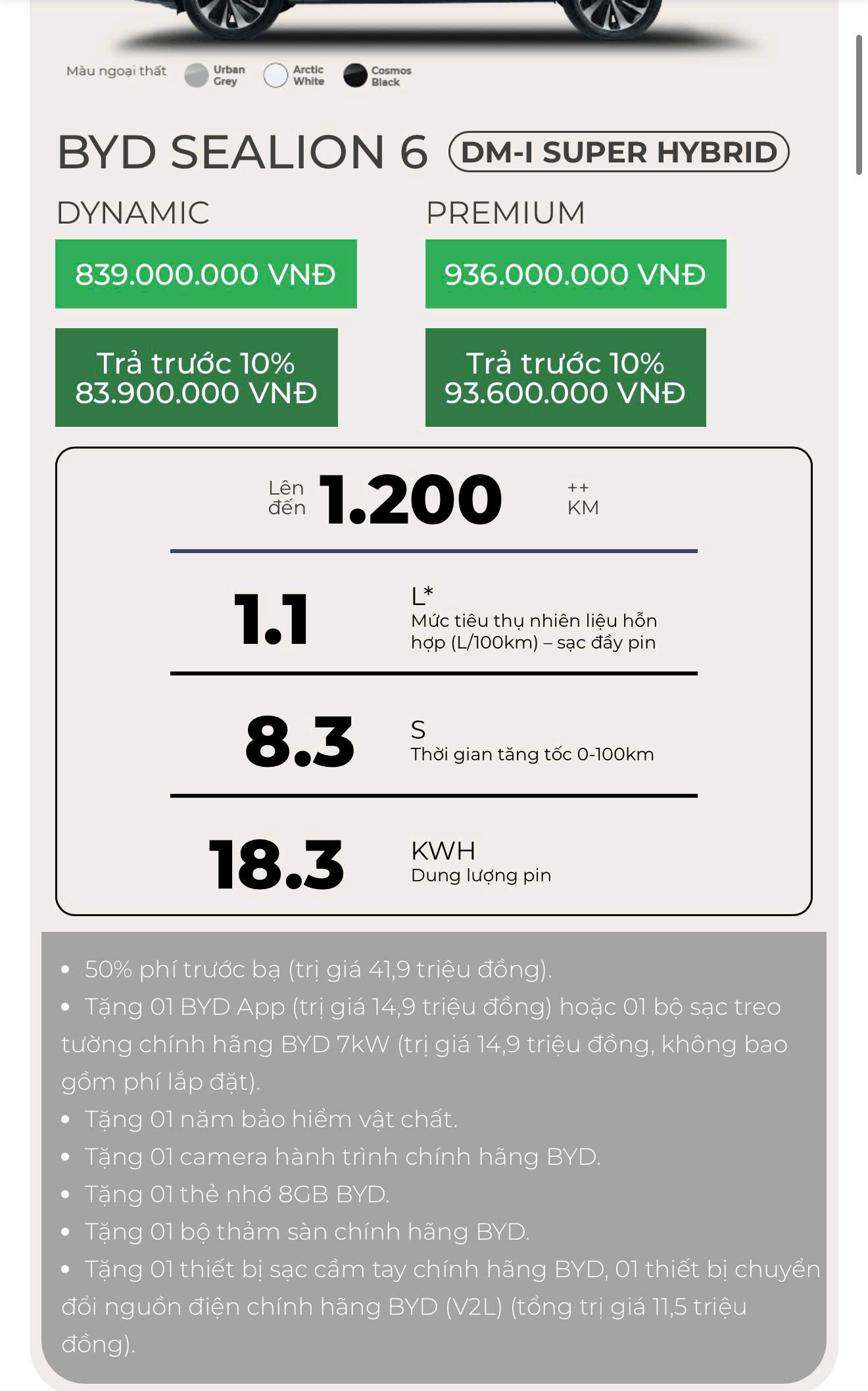 | BYD Sealion 6 Premium | 936.000.000 đ |
